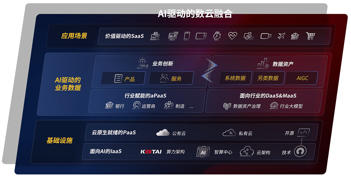 以尊龙旗舰厅鲲泰全国产化计算产品帮助金融行业客户构筑数字底座;以丰富的AI和数云产品及方案,,保障数据安全,,,挖掘数据价值,,,,提升服务品质